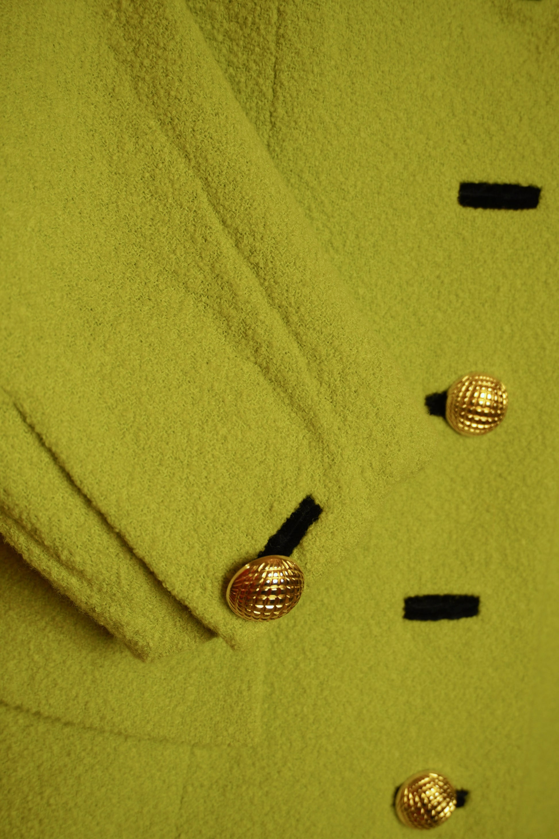 Escada – limegrön ullkavaj med sammetskrage