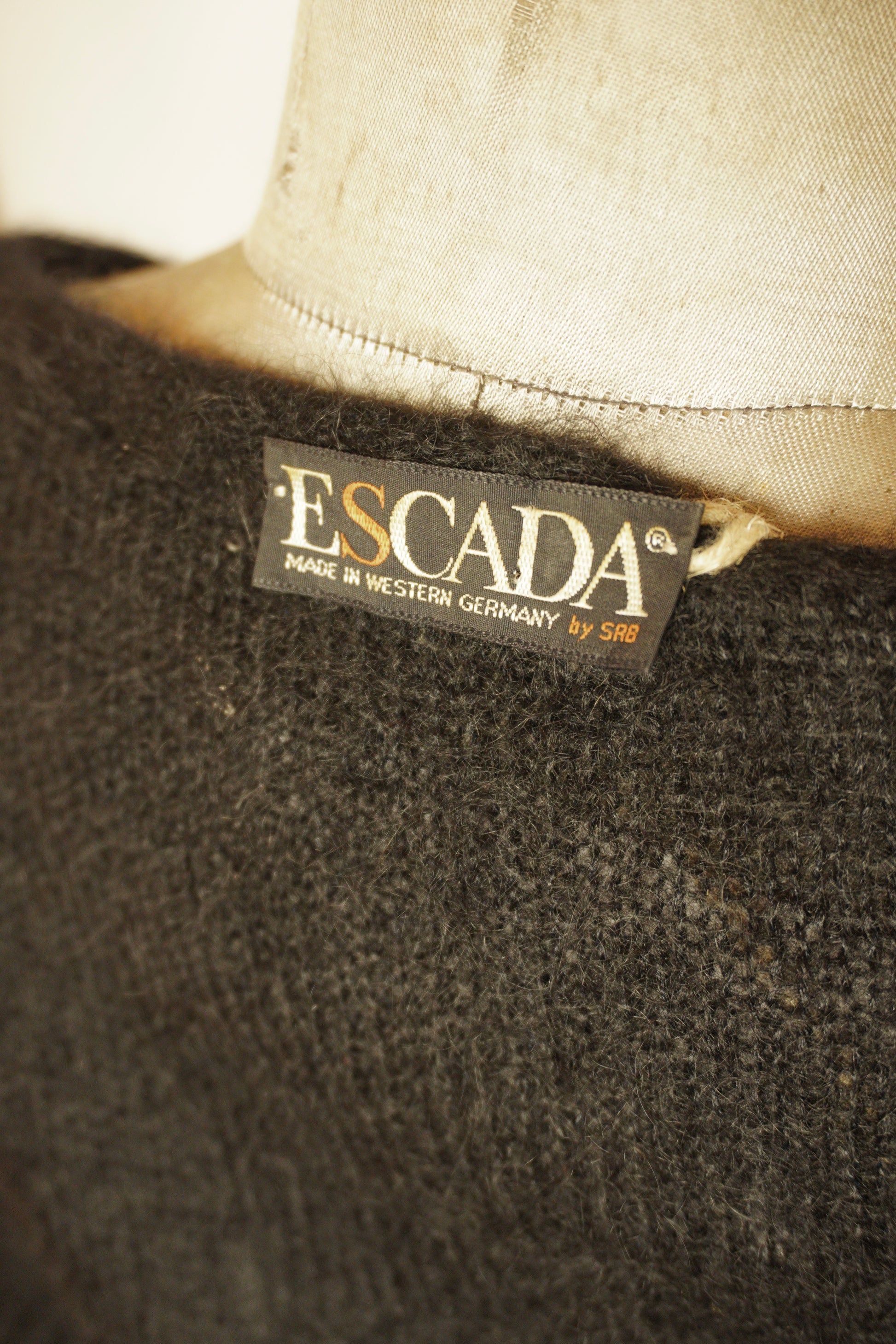 En elegant och unik tröja från Escada som kombinerar tidlös stil med en konstnärlig twist. Perfekt för den som söker ett exklusivt vintageplagg med både glamour och komfort.