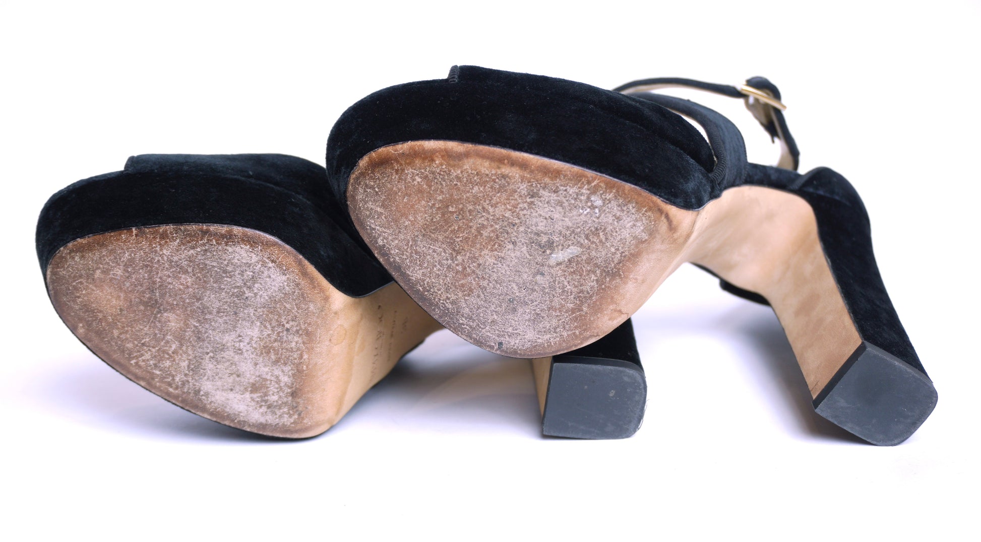 Eleganta och tidlösa klackar från Jimmy Choo som kombinerar feminin design med ikonisk glamour. Tillverkade i mjukt skinn och svart sammet med en hög, stabil platåklack som ger både höjd och komfort. De korsade remmarna framtill och den nätta ankelremmen med spänne skapar en smickrande silhuett och ger ett säkert, bekvämt stöd.