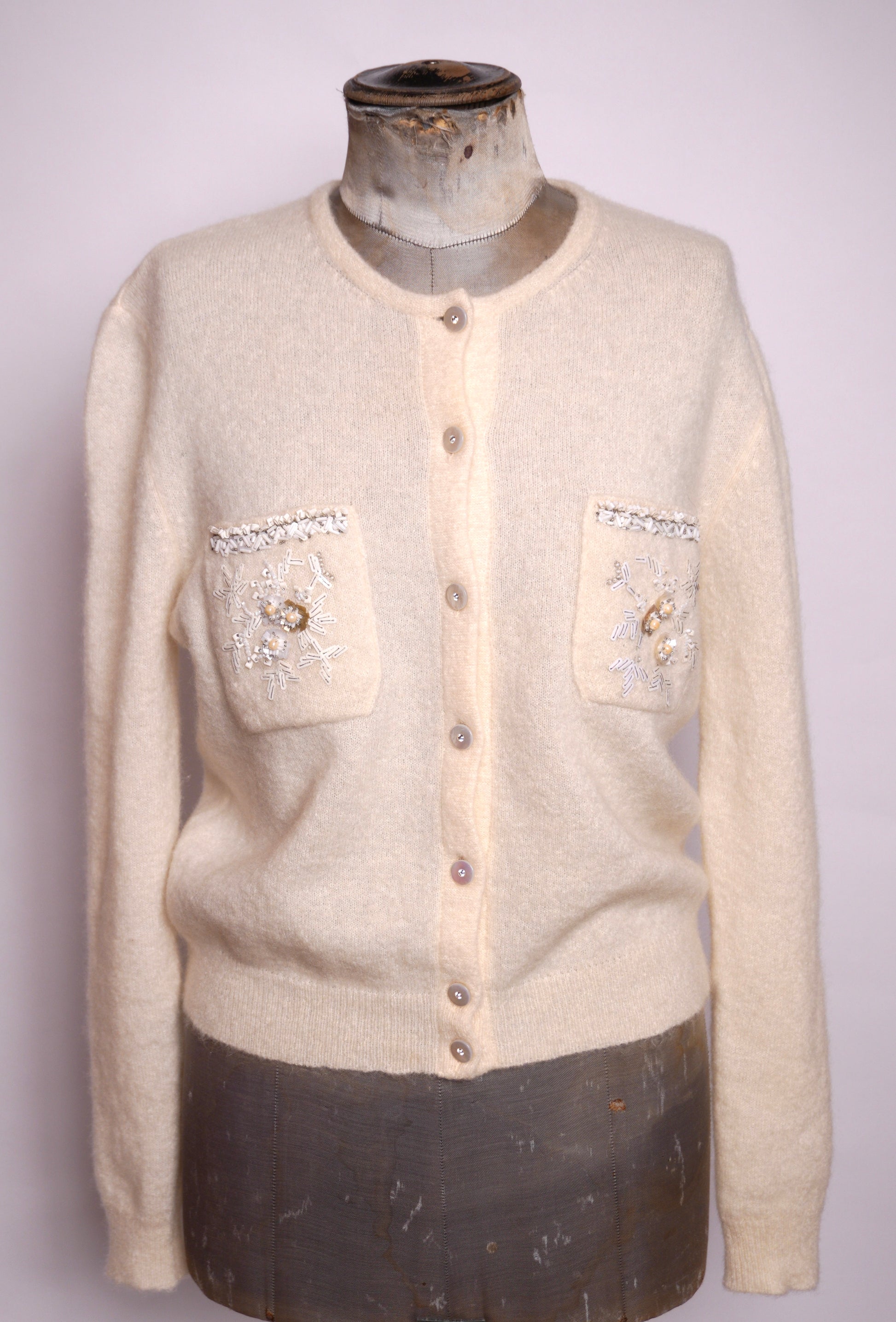 Valentino Boutique – Dekorativ Vintagekofta i Mjuk Ull